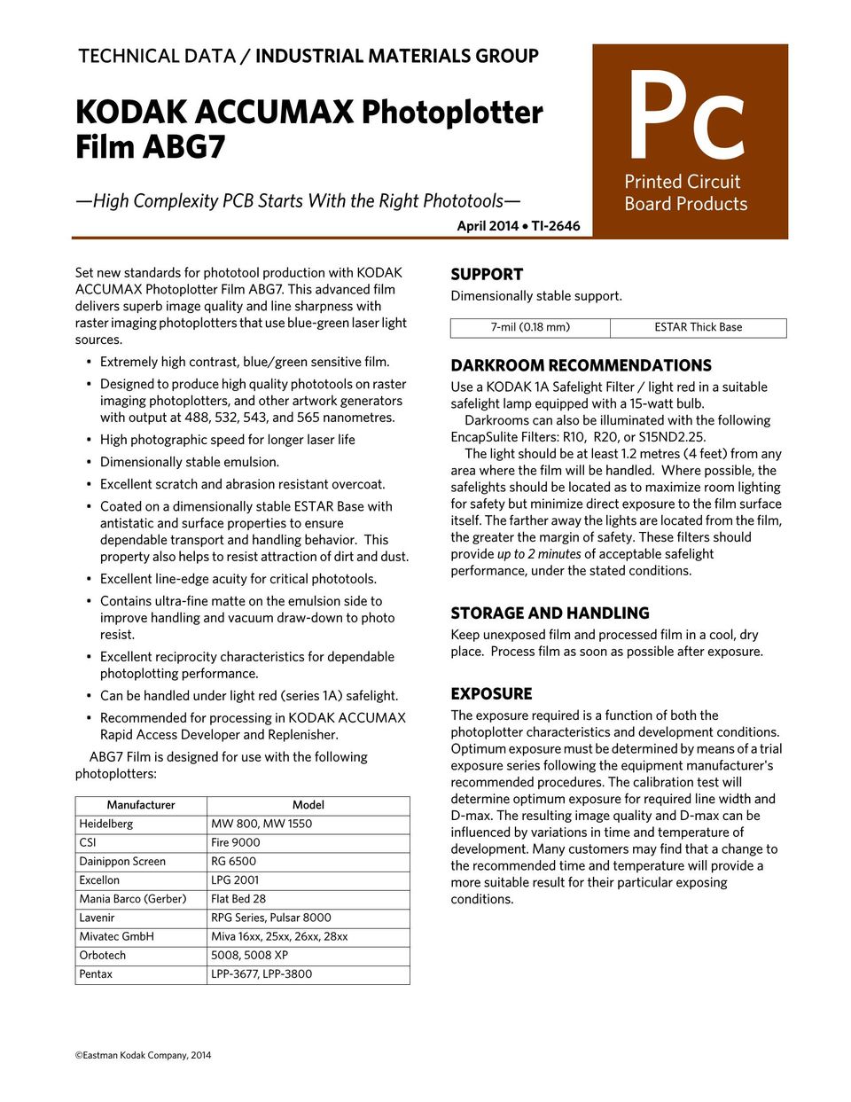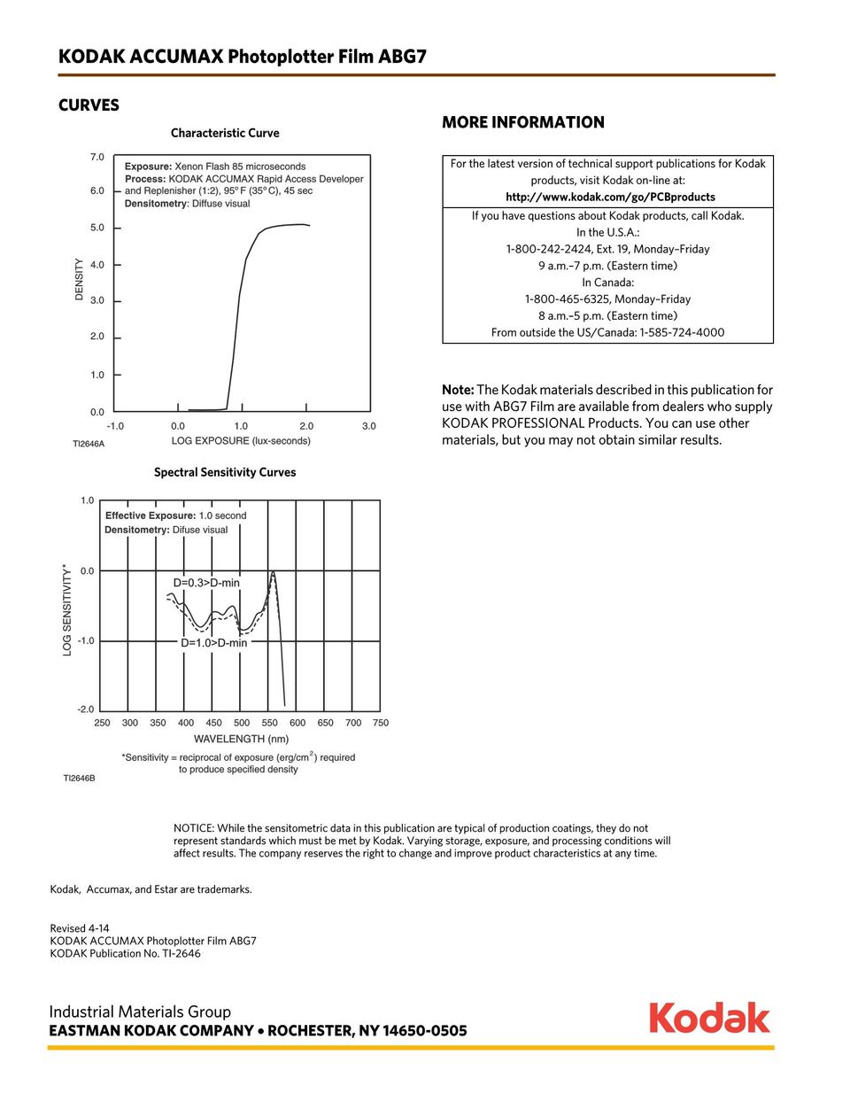 ABG7 Film verfügt über hervorragende Reziprozitätseigenschaften für eine zuverlässige Photoplotting-Leistung. Verarbeiten Sie den ABG7-Film in KODAK ACCUMAX Rapid Access Entwickler und Regenerator.