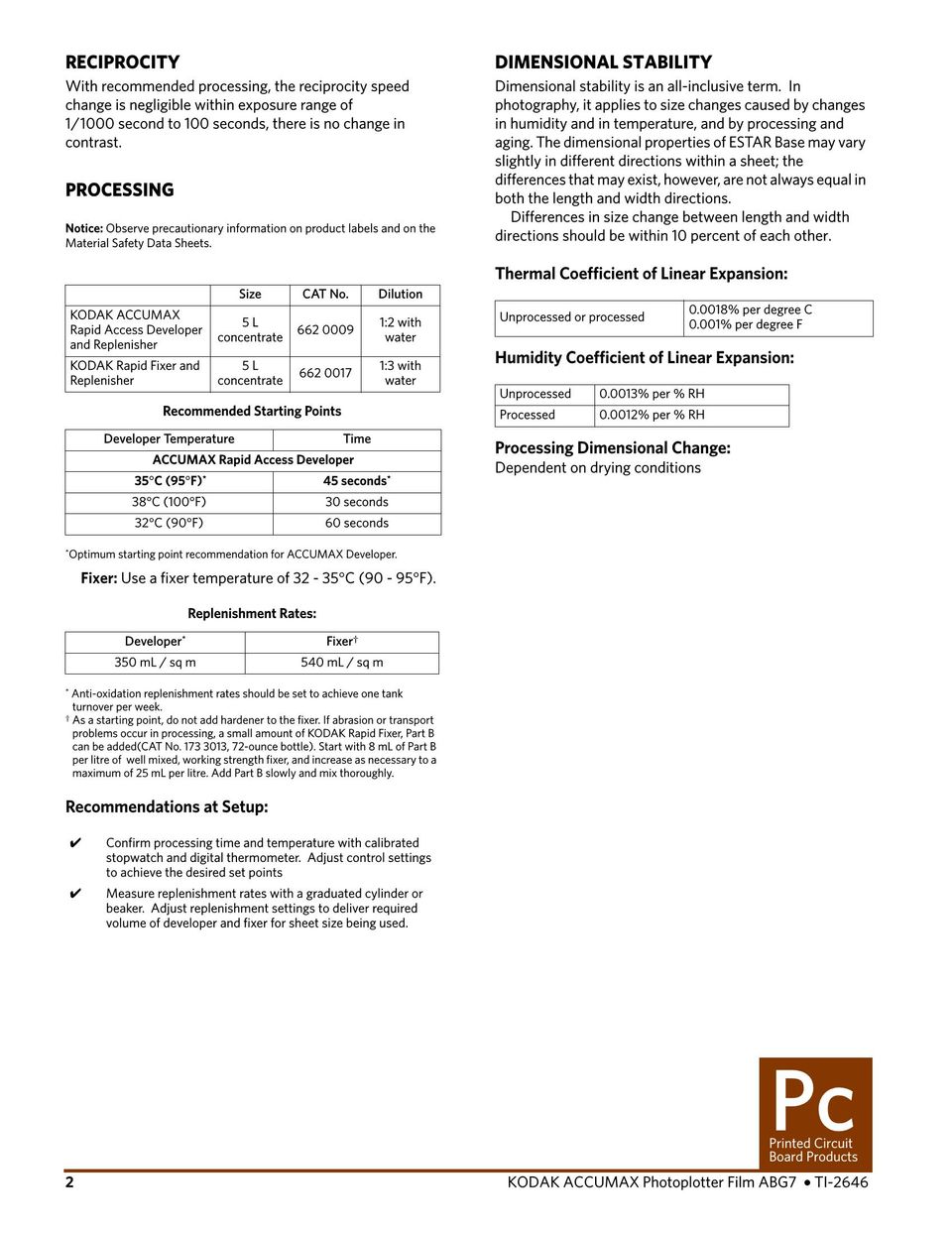 Wie alle KODAK PCB-Folien ist ABG7-Folie für Sauberkeit und Benutzerfreundlichkeit verpackt. Ein vakuumversiegelter, mehrschichtiger Folienbeutel bietet Abriebschutz während des Transports und eine Sauerstoffbarriere, die die Haltbarkeit verlängert. Die Folienblätter sind zur leichteren Identifizierung der Emulsionsseite gekerbt. Dank praktischer 50-Blatt-Pakete müssen Sie nie zählen.