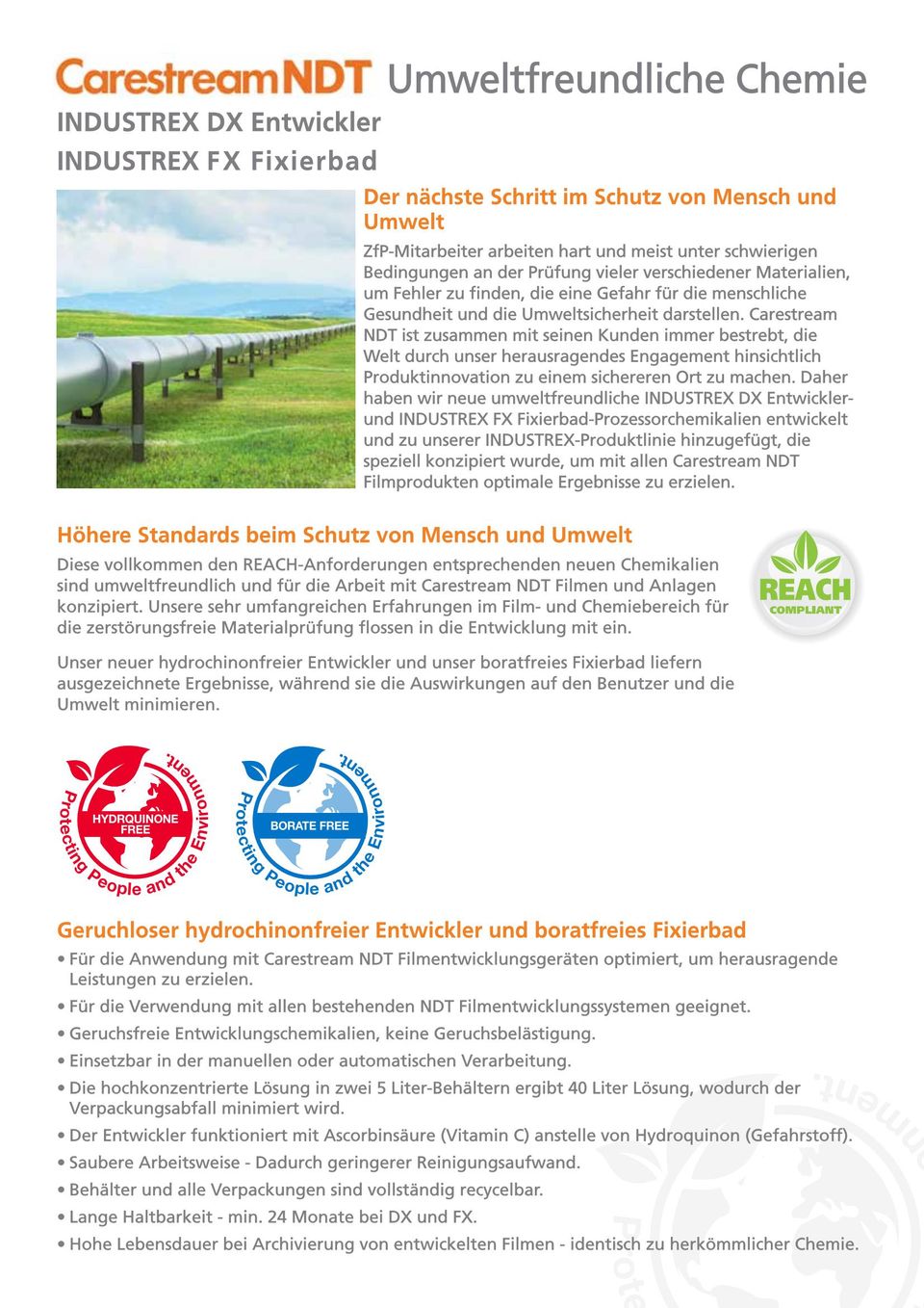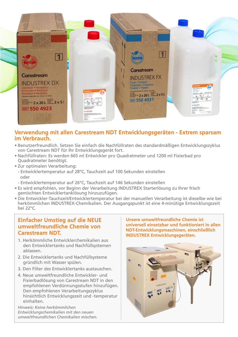 INDUSTREX Chemikalien für die manuelle und automatische Entwicklung unterstützen die fortschreitenden Anforderungen auf dem Markt der zerstörungsfreien Materialprüfung. Unsere Erfahrung im Bereich der Bilderfassung reicht über 100 Jahre zurück. Die Führungsposition in der NDT-Branche verdankt INDUSTREX allerdings einem konsequenten Engagement für Produktinnovation und Kundendienst