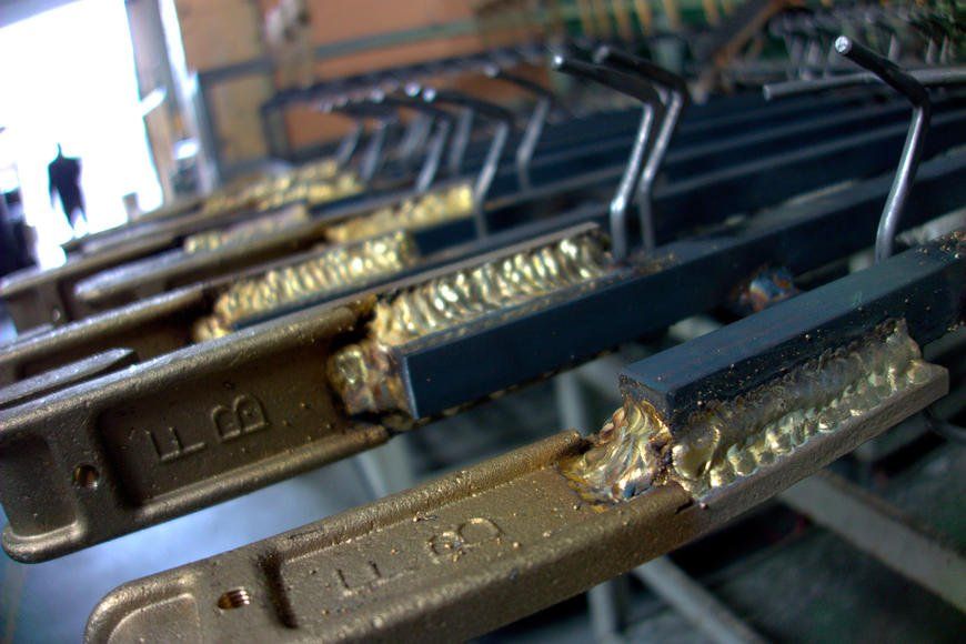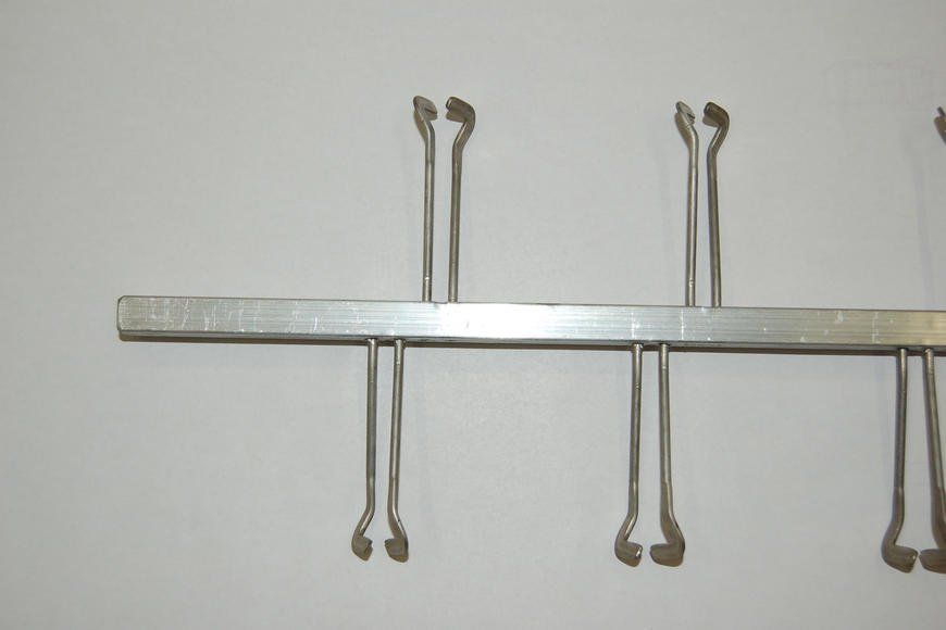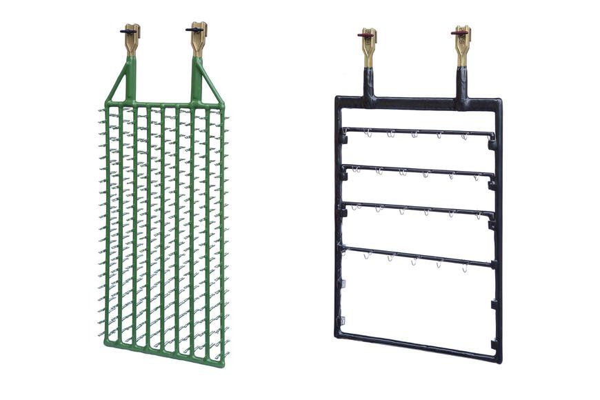Buffoli F.lli setzt seine eigenen Gestelle sowohl auf klassische Weise mit Schweißverbindungen der Haken in den verschiedenen Metallteilen um, als auch entspreched den Anforderungen des Kunden, indem Metallhaken verschraubt werden, um die höchste Elastizität zu gewährleisten.