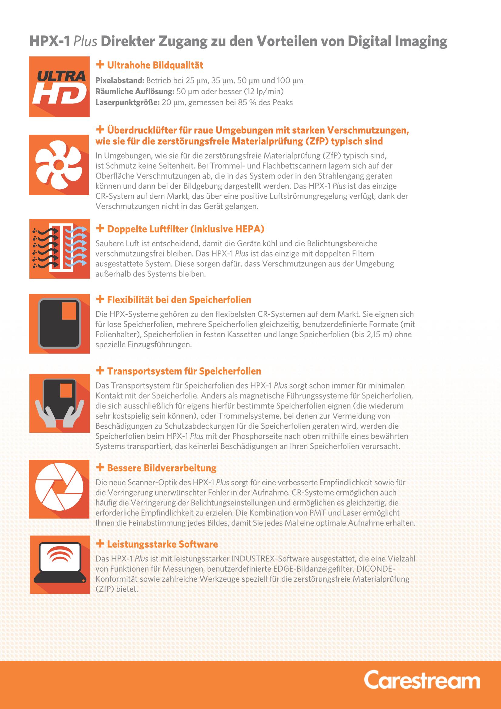 - Die HPX-Systeme gehören zu den flexibelsten CR-Systemen auf dem Markt. Sie eignen sich für lose Speicherfolien, mehrere Speicherfolien gleichzeitig, benutzerdefinierte Formate (mit Folienhalter), feste Kassetten und lange Speicherfolien (bis 1,5 m) ohne spezielle Einzugsführungen.