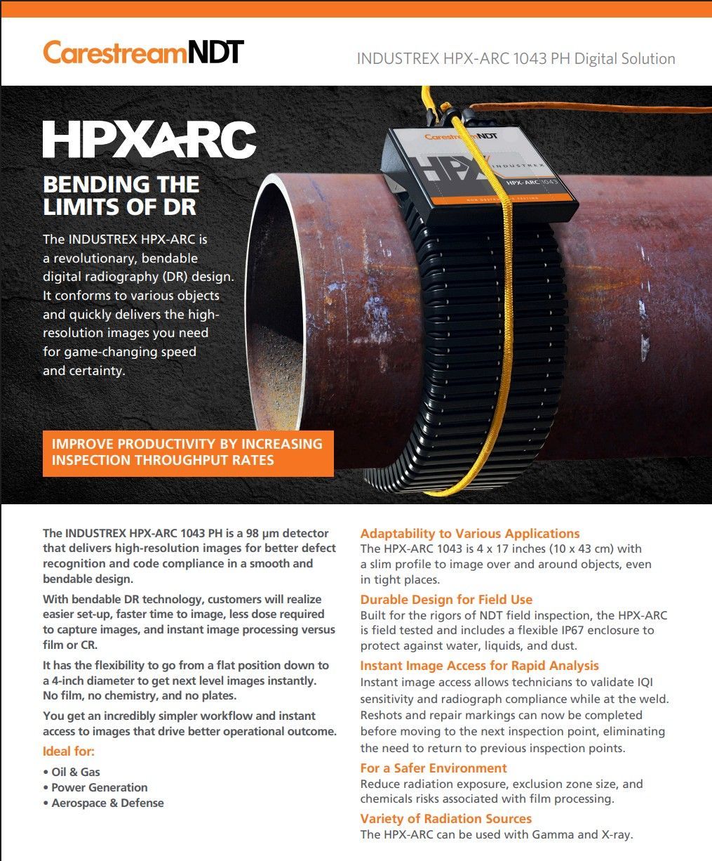 Der INDUSTREX HPX-ARC verfügt über ein revolutionäres, biegsames Design für die digitale Radiographie (DR). Er passt sich verschiedenen Objekten an und liefert schnell die hochauflösenden Bilder, die Sie für bahnbrechende Geschwindigkeit und Sicherheit benötigen.